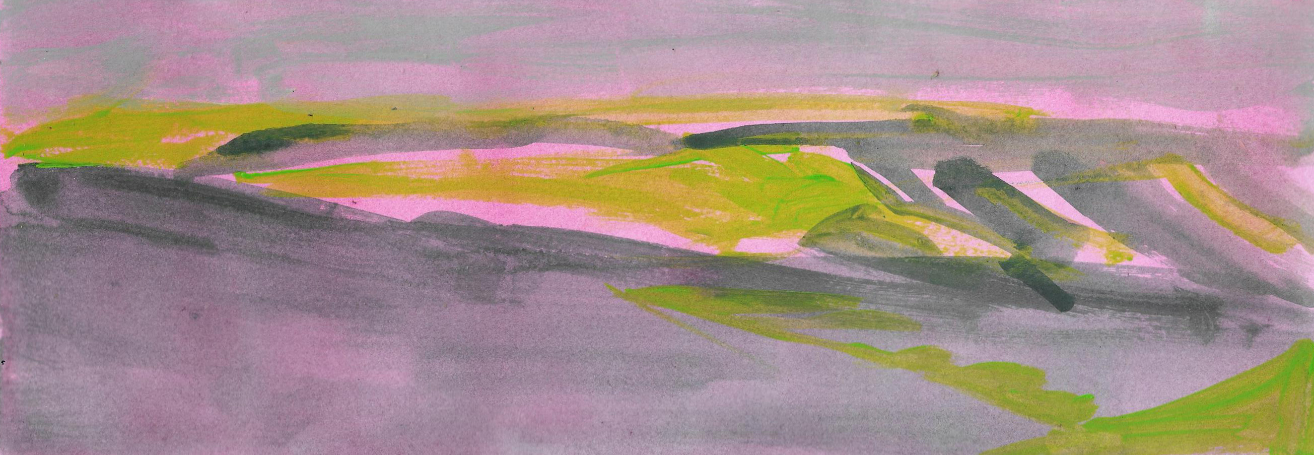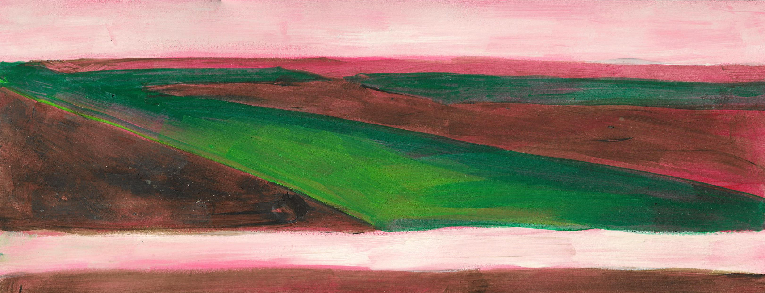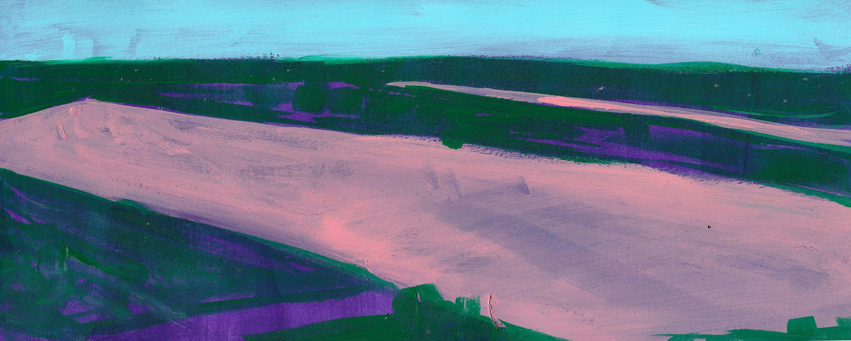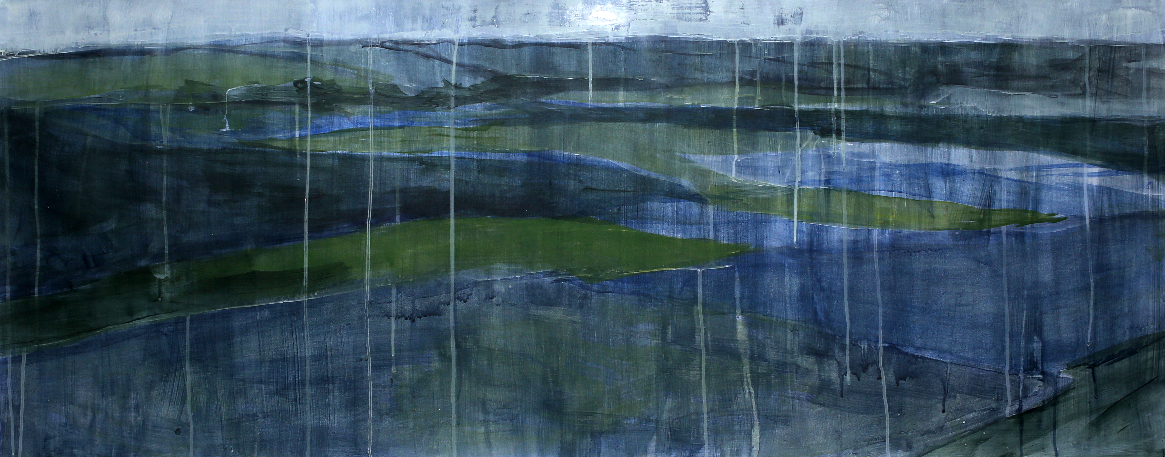 The paintings that make up this exhibition were created as a result of visual and video recordings made along the Belgrade–Novi Sad route. Constant, almost daily travel by train through this plain became a meditative routine that opened a space in which the outer world of the plain and the inner world of the author meet. Silent Territories become a place of encounter—outside and inside, our outside and personal inside—and, during the brief period in which Silent Territories inhabit the gallery space, they create a quiet space of contemplation for the viewer as well.