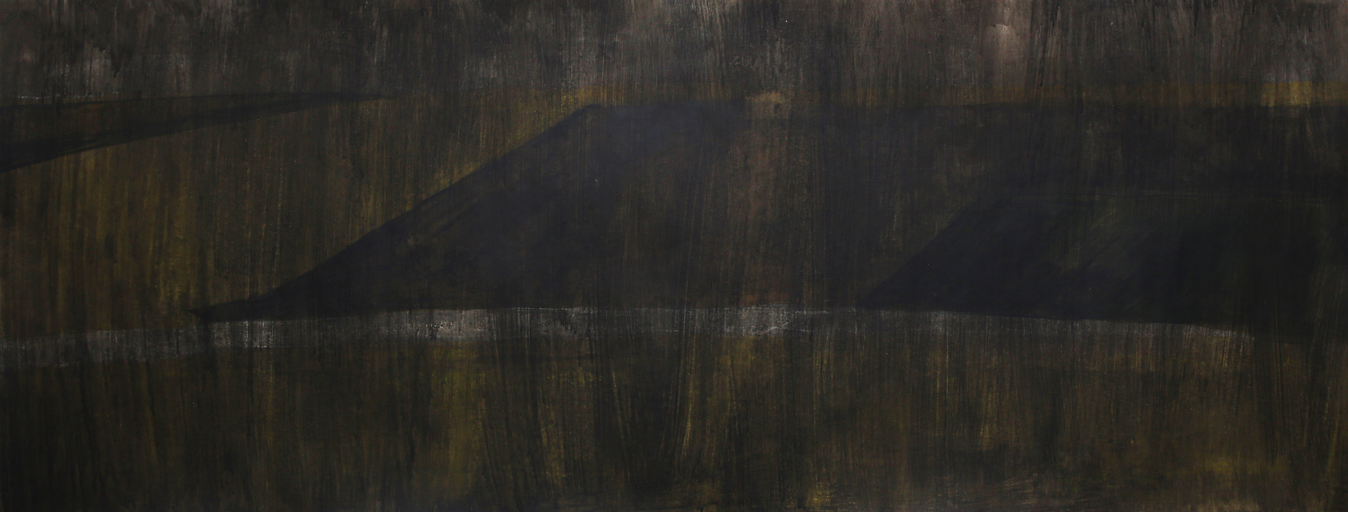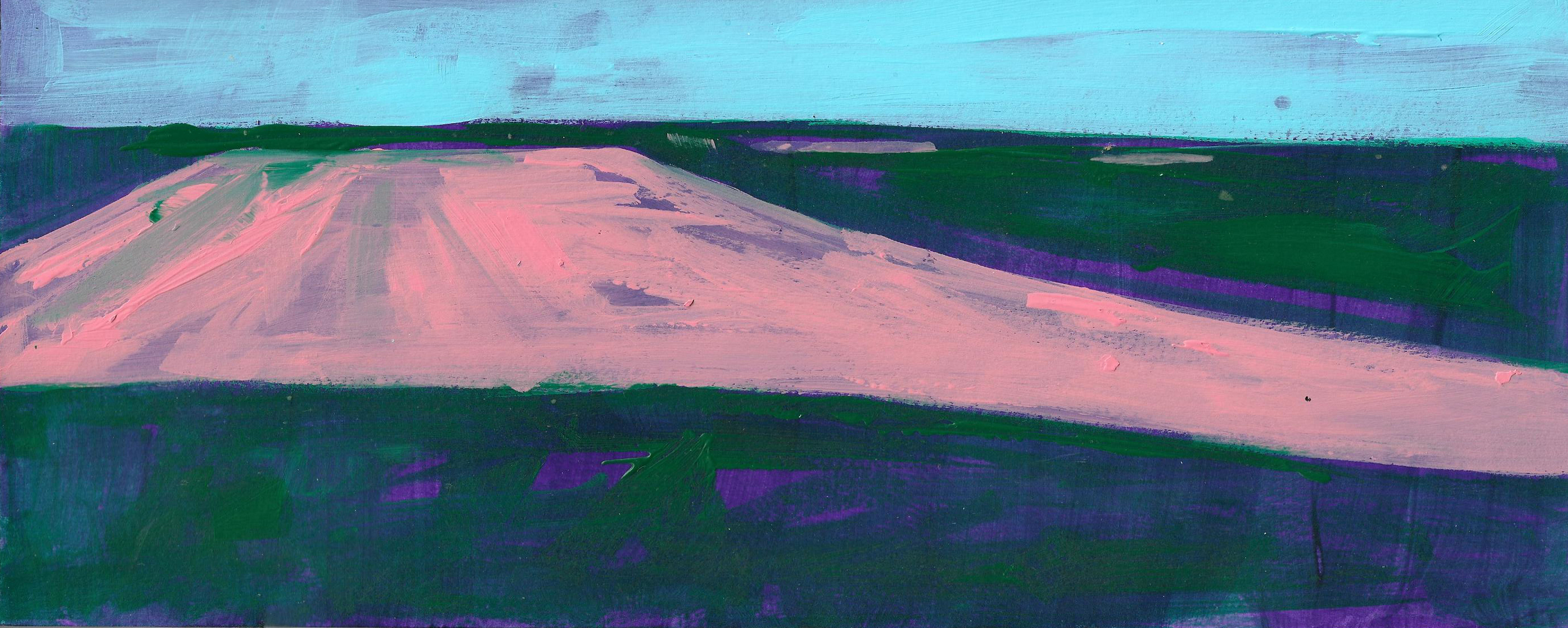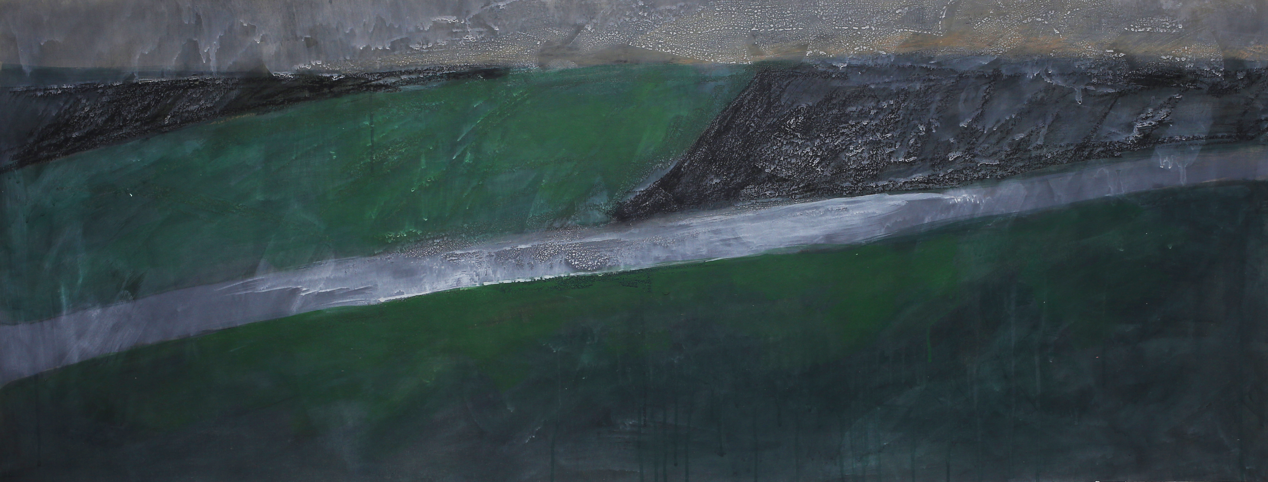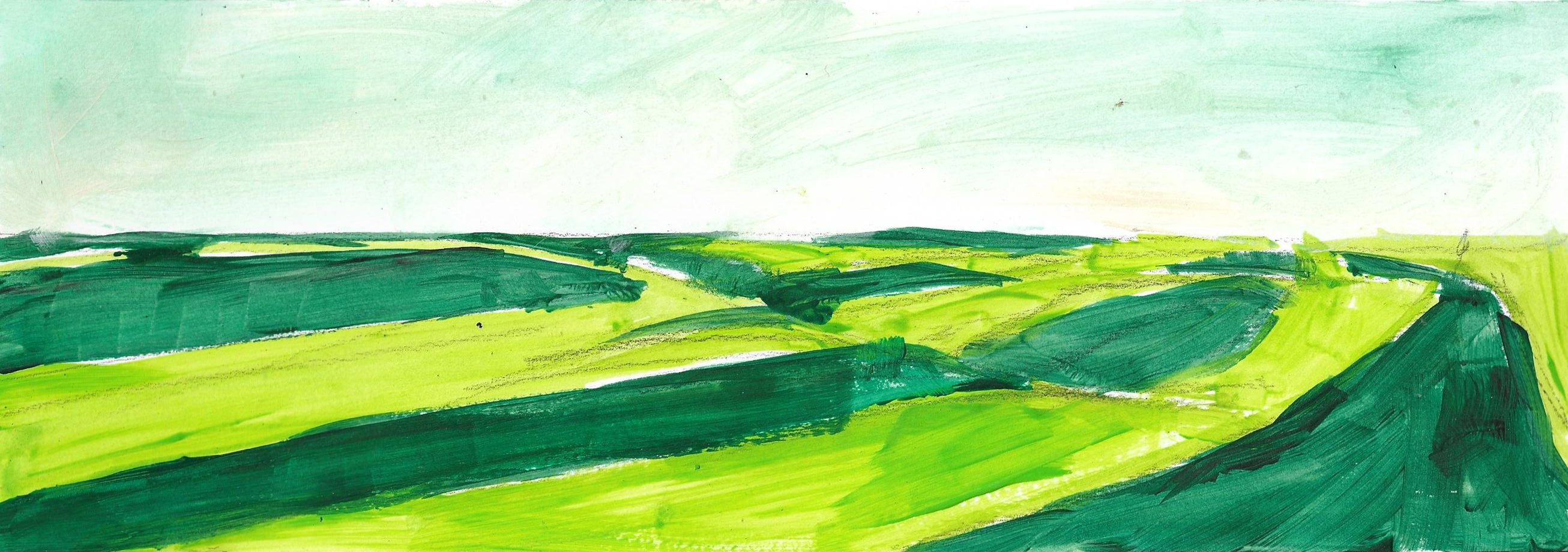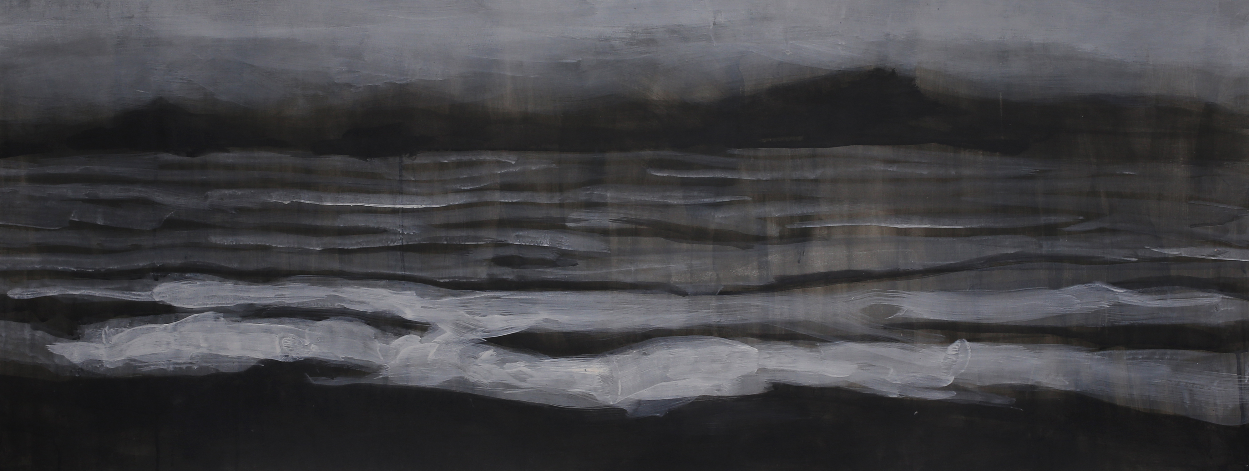 The paintings that make up this exhibition were created as a result of visual and video recordings made along the Belgrade–Novi Sad route. Constant, almost daily travel by train through this plain became a meditative routine that opened a space in which the outer world of the plain and the inner world of the author meet. Silent Territories become a place of encounter—outside and inside, our outside and personal inside—and, during the brief period in which Silent Territories inhabit the gallery space, they create a quiet space of contemplation for the viewer as well.