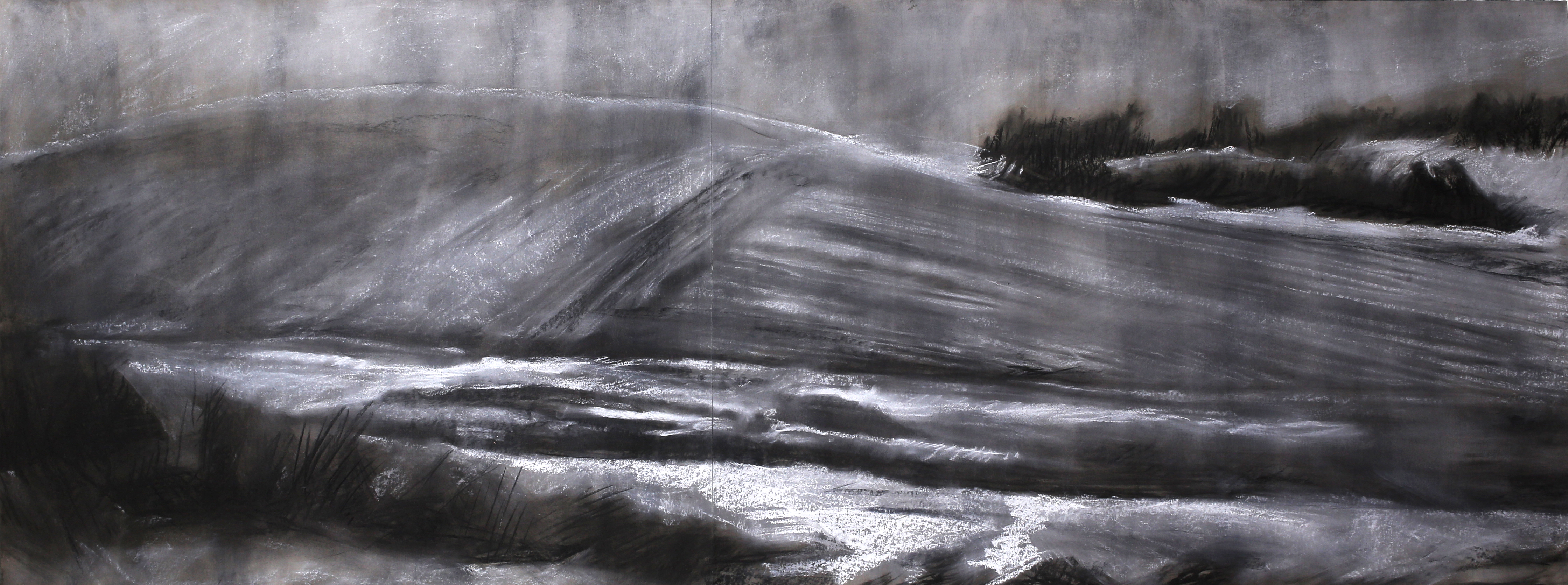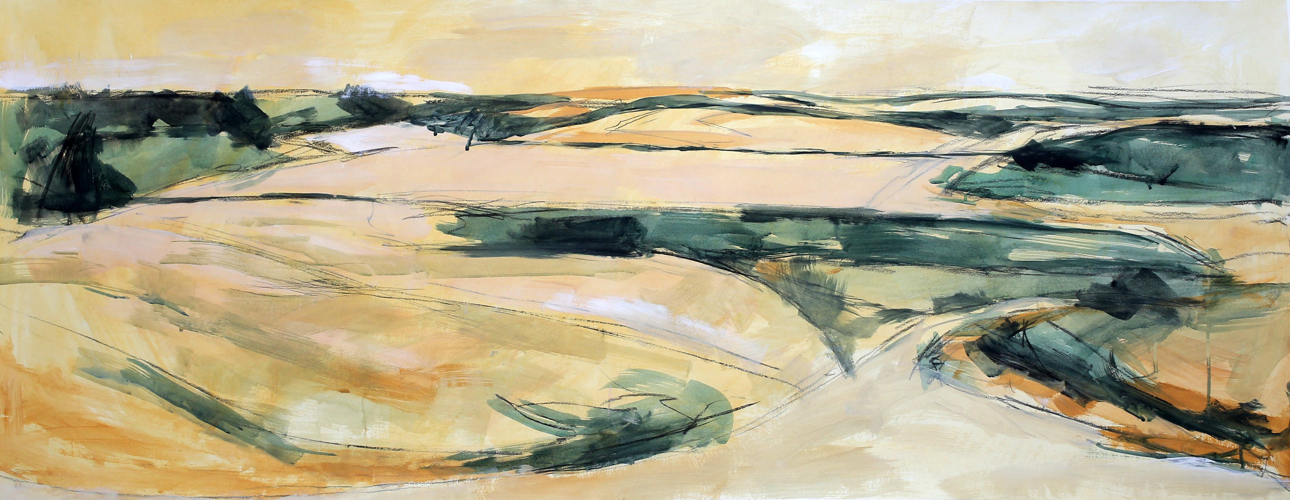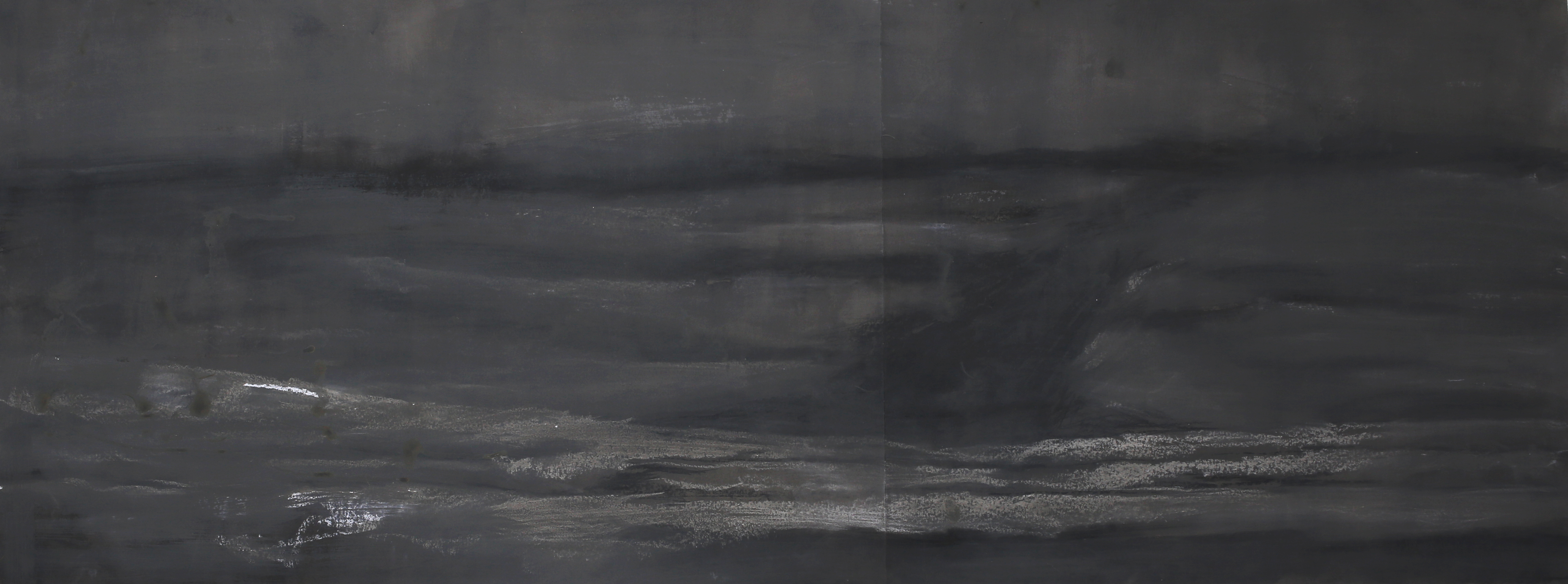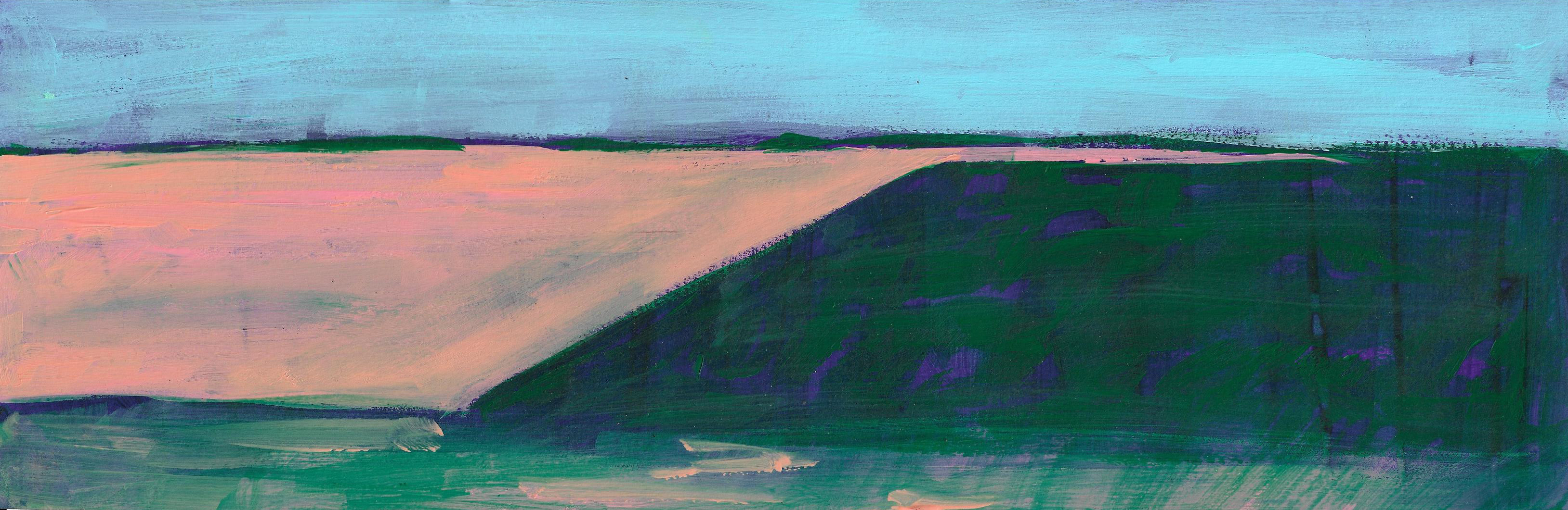 The paintings that make up this exhibition were created as a result of visual and video recordings made along the Belgrade–Novi Sad route. Constant, almost daily travel by train through this plain became a meditative routine that opened a space in which the outer world of the plain and the inner world of the author meet. Silent Territories become a place of encounter—outside and inside, our outside and personal inside—and, during the brief period in which Silent Territories inhabit the gallery space, they create a quiet space of contemplation for the viewer as well.